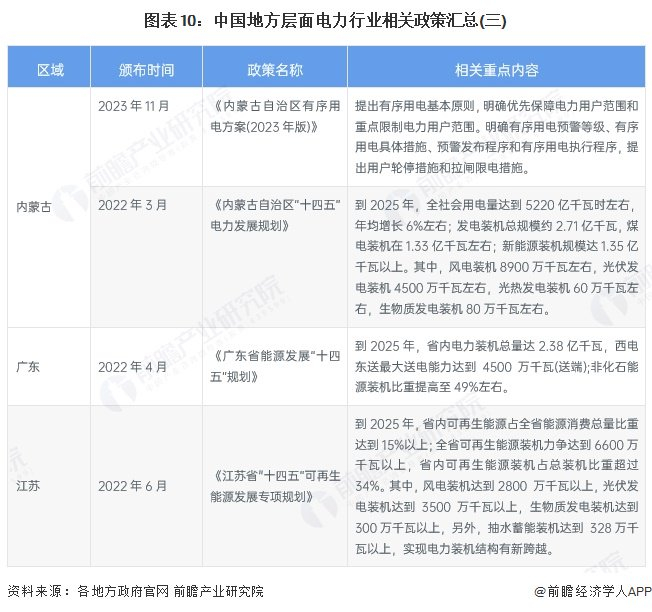 “十四五”时期,内蒙古、广东、北京等地区的发电装机容量规划目标处于领先地位,超过1亿千瓦;其次是吉林和江苏地区,装机容量规划超过6000万千瓦。除了总装机容量之外,各地的发展规划还包括可再生能源、社会用电量等方面。