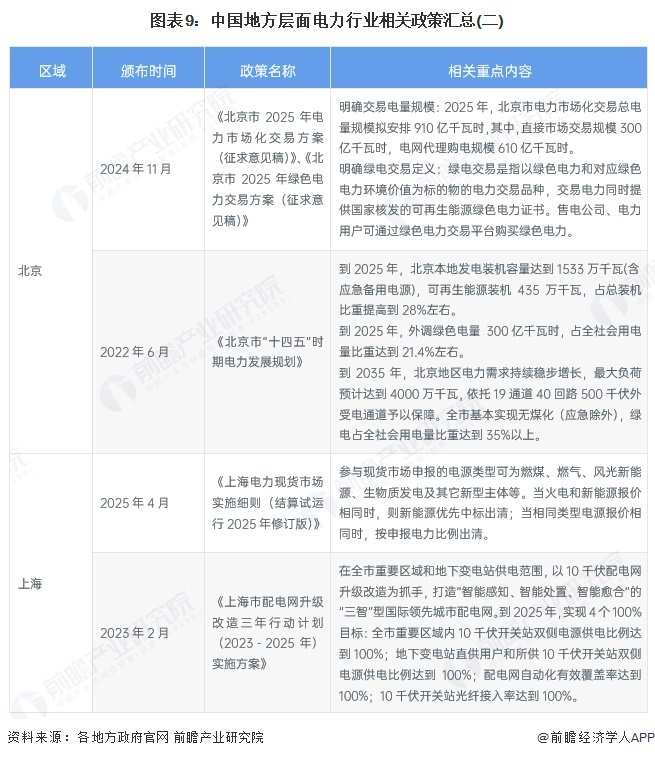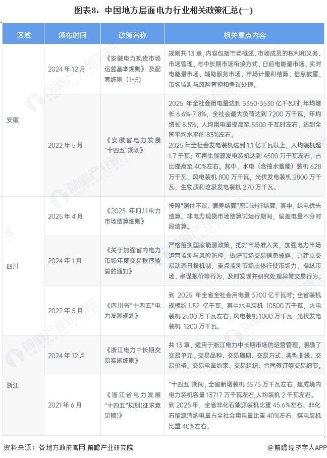 近年来,全国各地相继出台电力及相关产业相关政策,政策围绕推动电力业发展等领域展开,涉及装机容量、可再生能源、电力保障、电力交易等方面。截至2025年5月,地方层面电力行业政策规划汇总如下: