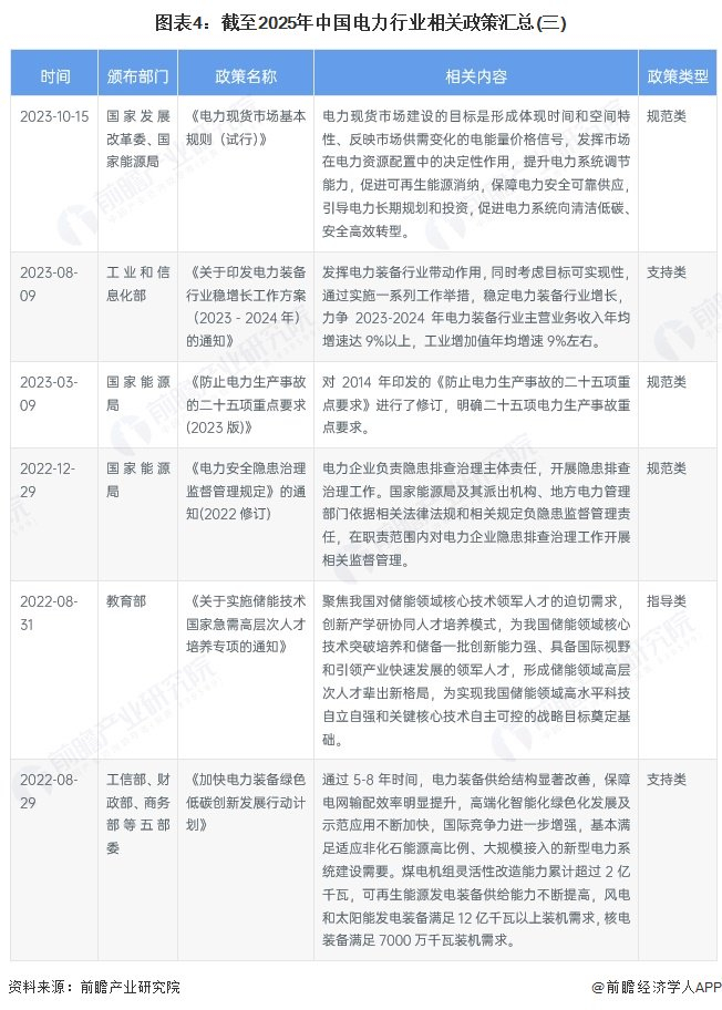 近年来,国家多部门密集出台电力相关政策,涉及电力建设、电力装备制造、电力系统调节能力、信息披露、电力现货市场、电力装备等多方面。截至2025年5月,国家层面电力行业政策汇总如下: