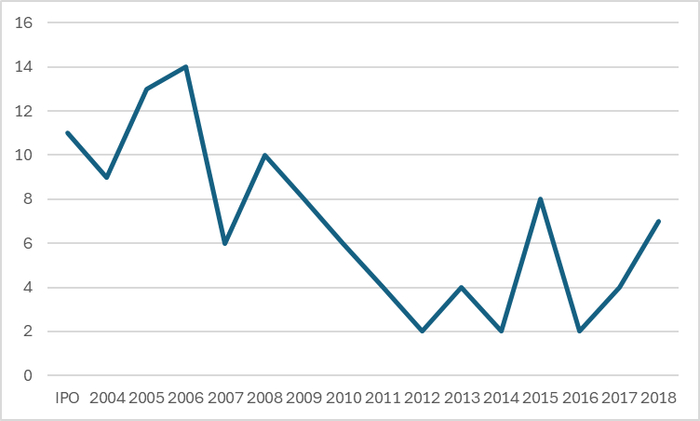 抛开这些信的内容,我们只看篇幅(如下图),2010年之前每年信基本都在10页左右,而2012年之后Larry和Sergey的信(他们每年轮流写)基本上都是2-4页。2015年Pichai加入后有个高峰,但是Larry和Sergey依然篇幅很短。这里面一方面可能体现了态度,从最开始的兢兢业业到后面可能就会略显潦草。另一方面也体现了创始人对具体业务参与度,2015年Alphabet成立后两位创始人主要聚焦新业务,主业参与不多。自己没有那么多亲身经历,自然就没有那么多可以写的了。而2018年两位卸任后,Pichai干脆也不接这个锅了,股东信就此停止了,其是否意味着Google已经告别了创始人模式,进入职业经理人模式?大模型和OpenAI崛起给Google带来了危机感,Sergey开始回归公司,参与模型训练和规划(并不直接管理),显示了Google创始人文化一种回归,这或许是市场忽视的一个维度。Sergey会不会明年恢复写股东信?我们拭目以待。