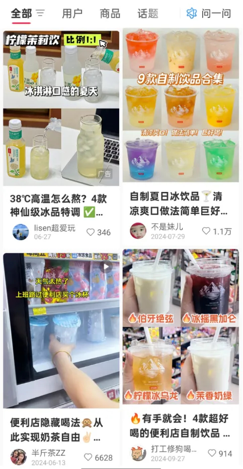 在小红书、抖音为代表的社交媒体上,自制冰饮也已成为夏季流量最大的话题。