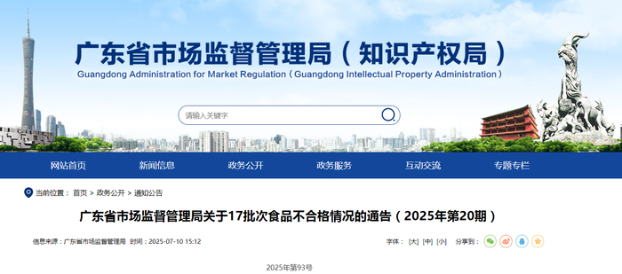 广东省市场监督管理局关于17批次食品不合格情况的通告(2025年第20期)