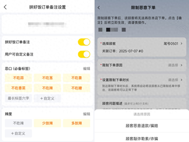 “对于商家来说,客观、真实的用户评分评价,是非常重要的经营指标。对于消费者来说,也是在订餐时甄别商家服务和餐品质量、是否靠谱的重要依据。”美团拼好饭负责人表示,拼好饭持续打击“恶意差评”,新推出多项新功能,包括为全量商家开放“恶意用户限制下单”等,进一步完善风控体系,维护中小商家权益,为商家营造公平合理的经营环境。