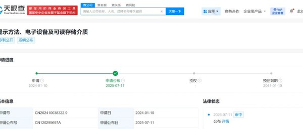 相关信息显示,该专利的申请号为CN202410038322.9,申请日为2024年1月10日,并于2025年7月11日进入公布阶段。专利摘要显示,这项技术主要针对多折叠屏设备的界面交互设计,旨在为用户提供更便捷的操作体验。