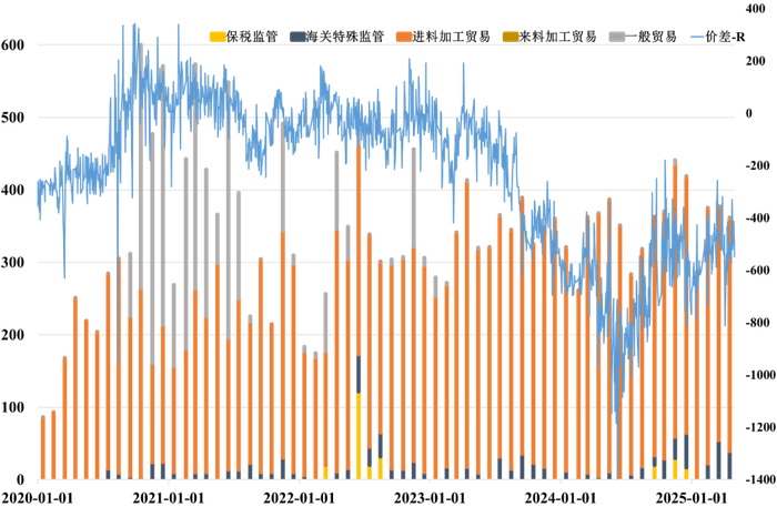 从贸易方式来看,银锭出口以进料加工贸易为主。前五个月,进料加工出口银锭同比增长2.04%,在总出口量中的占比为90.8%;而一般贸易出口量在总占比中仅为0.08%,目前基本处于关闭状态。在出口流向方面,我国99%的银锭出口至中国香港。