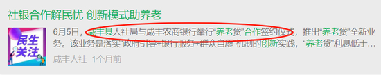 无独有偶,6月5日,湖北咸丰县人社局与咸丰农商银行举行“养老贷”合作签约仪式,推出“养老贷”全新业务。