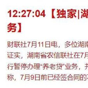 最近几日,湖南多家银行推出的“养老贷”产品在社交平台上引发广泛争议,一度登上热搜。而最新报道显示,湖南省农信联社已经发出通知,叫停了“养老贷”业务。
