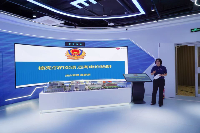 在反诈宣传方面,烟台联通坚持全渠道覆盖与精准触达相结合。公司在全市182个营业厅常态化开展宣传,摆放700余个反诈桌牌,实时更新LED屏滚动标语,厅内轮番播放宣传短片,并定期向易感人群精准推送反诈短信。同时,针对诈骗低龄化、老年化趋势,深入社区、广场、党群活动中心、校园等场所开展专题宣讲,已组织场景化反诈宣传170余场,将防诈知识送到群众身边。