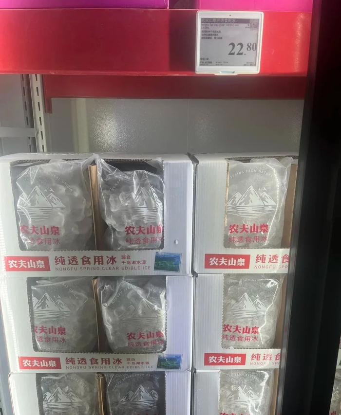 山姆超市里,农夫山泉2公斤装的食用冰标价22.8元,引发了网友热议:“这是艾莎公主亲手冻的?”