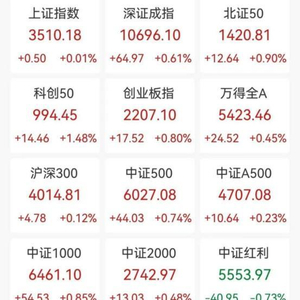 个股涨多跌少,Wind统计显示,两市及北交所共2958只股票上涨,2202只股票下跌,平盘有252只股票。沪深两市今日成交额超1.7万亿,较昨天放量2000多亿。截至收盘沪指涨0.01%,收报3510点,深成指涨0.61%,收报10696.10点,创业板指涨0.8%,收报2207.10点。