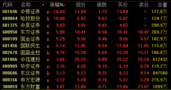 港股方面,中州证券涨超47%,兴证国际涨约24%,国联民生涨逾15%,国泰海通涨超10%。