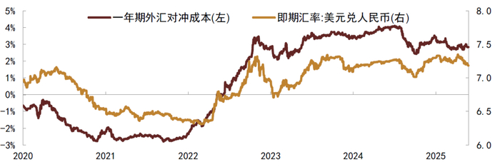 今年以来,美元指数整体走弱,特别是如果下半年美联储开始降息,那么美元大方向走弱的趋势将会更加确定,企业补结汇的动力也会进一步增强,推动下半年人民币继续升值。过去在强美元周期下,企业更愿意持有美元,因此过去两三年企业结汇率较低,贸易顺差带来的利润多以美元形式持有,而今年美国各项政策不断出台、债务风险不断累积以及市场对美国中长期经济衰退的担忧都在加大对美国主权信用的侵蚀,导致美元不断走弱,伴随人民币相对美元汇率贬值压力缓解,企业结汇率有所抬升。虽然下半年“大而美”法案的通过可能会推升中期美国财政赤字,但我们认为年内其对赤字和经济的提振效果相对有限。最终美国经济还是会回到在“三高”环境影响自然冷却的逻辑,即高通胀、高利率、高工资的环境会通过挤压企业利润、降低融资需求以及制约消费需求来最终倒逼美国经济和通胀降温,特别是如果下半年美联储开启降息,叠加企业结汇增加人民币需求,人民币相对美元或会进一步升值。企业结汇需求的抬升本身会抬升离岸人民币供给,从而推动离岸利率下行。更进一步地,为防止人民币过度升值,人行有动力继续宽松在岸和离岸资金面,推动在岸和离岸人民币利率继续下行。人民币过快升值一方面会降低我国出口优势,在中美贸易摩擦加剧下,出口本身就面临一定下行压力,如果人民币升值过快会进一步削弱出口行业的吸引力。此外,人民币汇率变动过大也会加大资本市场波动。人行在人民币升值压力抬升的情况下会主动降低离岸和在岸人民币利率来降低结汇吸引力。我们认为未来离岸人民币利率仍会延续下行趋势,甚至不排除下行至在岸收益率曲线下方的可能,从而带来可观的资本利得收入,目前离岸人民币利率仍高于在岸,我们认为是很好的配置和加仓机会。