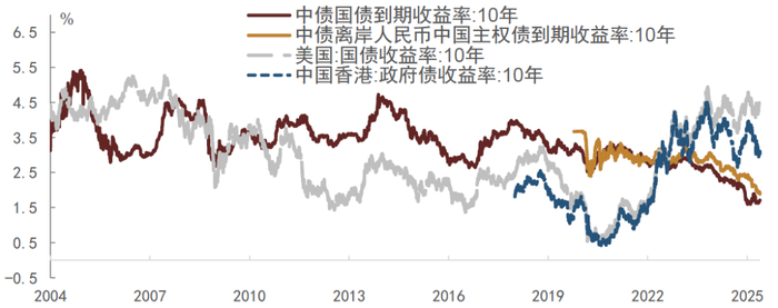 离岸人民币债的交易价值一定程度上也需要依托活跃的二级市场带动。近年来,离岸人民币债券市场交投活跃度显著提升,比如我们看到政策层面也在积极推动建设更活跃的离岸人民币债券市场。一方面,中国财政部正持续加大离岸人民币国债发行力度,在品种方面也看到了更多的创新,今年4月财政部在伦敦发行绿色离岸人民币债券,是首次发行境外绿色主权债券。离岸国债规模的扩大一定程度上也在为离岸市场注入优质的底层资产,国债可以充分发挥市场“锚定效应”,发挥作为离岸人民币债券定价基准的功能,撬动其他离岸人民币债券品种的发行意愿,并带动市场的进一步扩容。另一方面,人行等监管也在推动离岸人民币债券市场投资者的扩容、回购及衍生品等业务的放开、以及运行等机制的优化。2025年1月,人行行长潘功胜在亚洲金融论坛开幕式上宣布将做大做强离岸人民币市场[16],包括推出债券通项下离岸债券回购业务、支持推出离岸人民币国债期货、优化债券通南向通运行机制(支持境内投资者更便利购买多币种债券,并延长结算时间,后续还将有序扩大投资者范围,增加更多托管银行)等多项措施[17]。我们预计在多项政策支持下,离岸人民币债券市场或有望迎来进一步扩容,包括一级市场发行意愿提升、二级市场流动性改善、投资需求增加等,这种扩容也有助于推动中资主体离岸融资成本的下行。