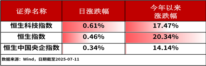 7月11日,港股主流指数集体收涨。其中,恒生科技指数上涨0.61%,涨幅相对居前。市场情绪较为乐观,科技板块表现亮眼。