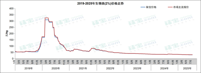 欧洲2%生物素报价2.80-3.00欧元/kg,生物素纯品价格130欧元/kg,价格稳定。