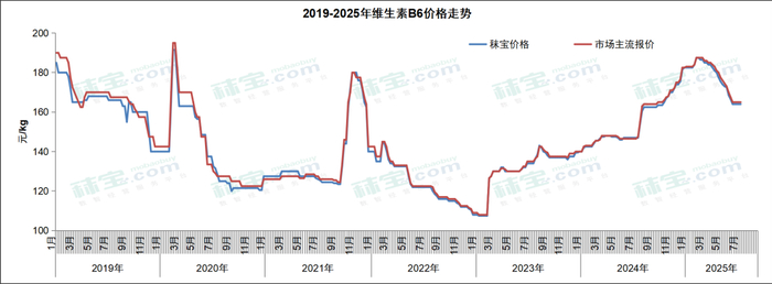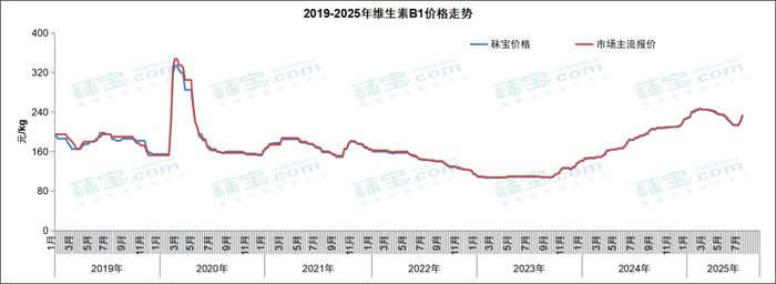 本周国内维生素B1市场主流价格228-238元/kg。国内主流厂家停报,进入检修期,市场价格偏强调整。据市场消息称,7月4日,华中药业维生素B1预计停产检修两个月,同步停止报价。7月7日,兄弟科技维生素B1停签停报。7月9日,天新药业维生素B1停签停报。后期需关注厂家报价情况和检修进度。