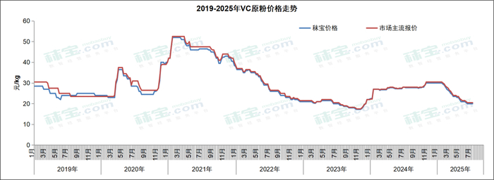 欧洲市场价格2.40-2.45欧元/kg。生产商的停报举措以及国家对VC市场竞争的调查,对当前VC价格起到了稳定的作用。VC价格稳固,甚至有小幅反弹。