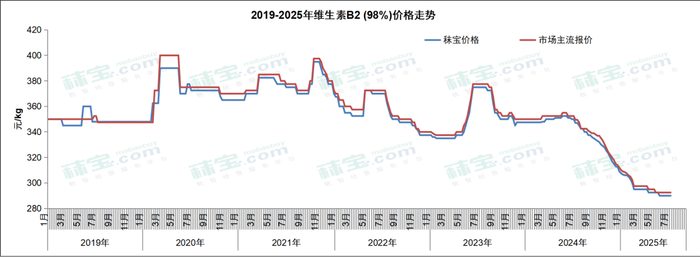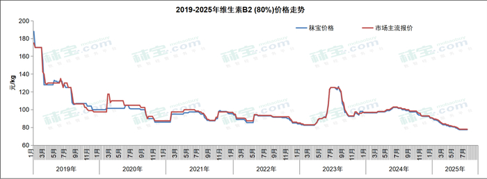 本周维生素B2 (80%) 市场主流价格76-80元/kg,VB2 (98%) 市场主流价格280-305元/kg。厂家供应充足,终端维持刚需补货,部分价格稍低,新产能的释放加剧产能过剩情况。