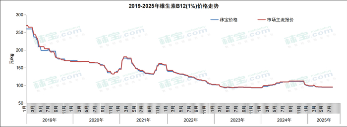 本周维生素B12市场主流价格94-97元/kg。维生素B12下游需求疲软,市场价格弱稳,后续需关注下游库存变化。
