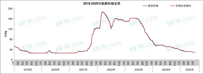 本周肌醇市场主流报价28-32元/kg。市场供应过剩,下游需求清淡,肌醇价格趋弱运行。