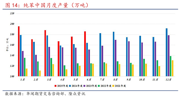 从纯苯年产量来看,2025上半年,国内纯苯产量整体维持同比增长的状态,上半年产量为1083.1万吨,较去年同期同比增长7.5%。