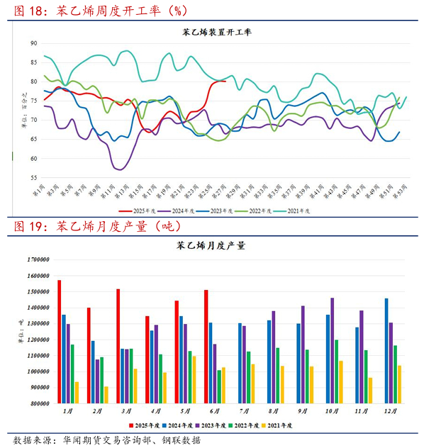 从季节性角度来看,每年七、八月份通常为白色家电排产淡季,九月后白色家电排产需求再度提升,预计四季度苯乙烯需求仍维持偏高水平。