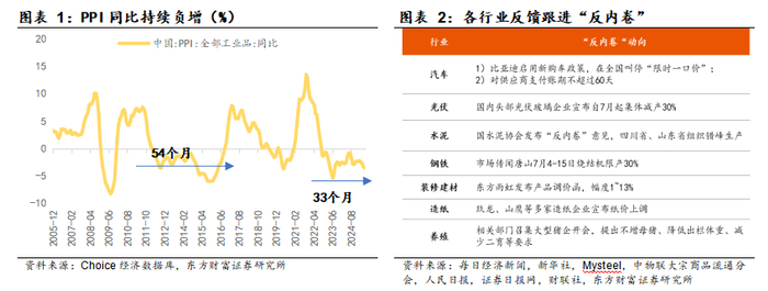 本轮“反内卷”背景:宏观层面,政策顶层设计为“全国统一大市场建设”、加速内循环,但近年来地方保护和市场分割导致资源要素配置效率低下;中观层面,2020-2022年企业利润大幅扩张后开启新一轮资本开支周期,新增产能持续投放及需求预期走弱导致供需压力加剧,PPI同比增速自2022年10月以来持续负增,截至目前已连续33个月。