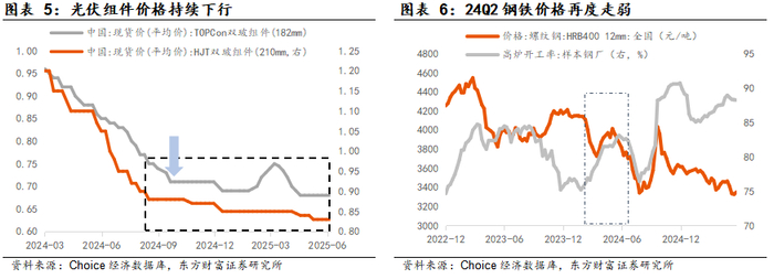 行业自律&价格监控:能边际改善内卷问题,但“囚徒困境” 下,若缺乏具体认定标准和处罚细则,后续效果可能不明显。如1)24年10月CPIA组织16家头部企业达成 “保价” 共识,明确组件最低成本0.69元/瓦,并呼吁企业拒绝低于成本的投标;但12月即出现招标方无视成本线坚持低价中标、最终两家企业以0.625-0.631元/瓦的投标价格入围的事件。2)24年3月中钢协号召企业自律控产降库存,但3-6月样本钢厂的高炉开工率仍持续提升,导致去库延缓、价格持续下跌。