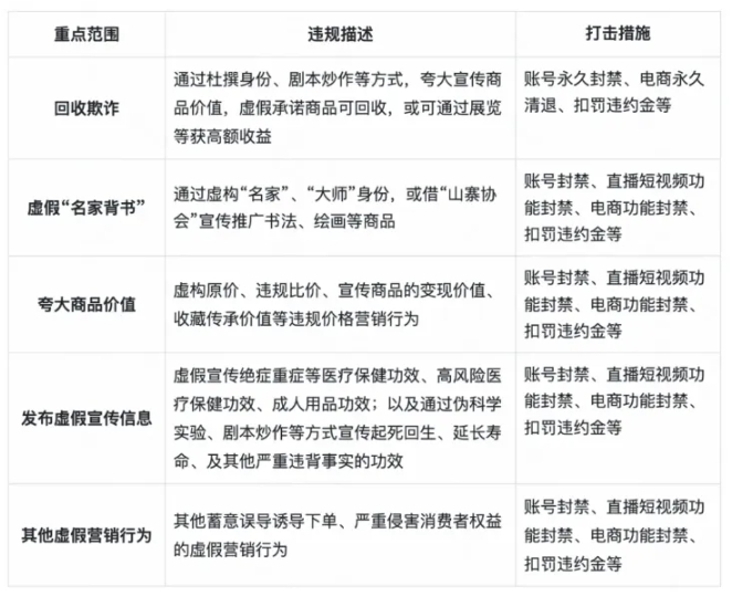 今年3月,快手发布了打击“虚假营销不当牟利”等欺诈行为专项治理行为的公告,针对回收欺诈、夸大商品价值、发布虚假宣信息等行为作出整治,已经对1000余个商家/达人采取了账号永久/限期封禁、直播功能永久/限期封禁、电商功能封禁、分销权限封禁等处置措施。