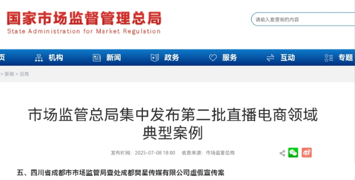 近日,市场监管总局集中发布第二批直播电商领域典型案例。其中,四川省成都市市场监管局查处成都樊星传媒有限公司虚假宣传案,就涉及到了网红四川可乐。