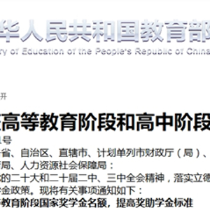 去年起,我国调整了高等教育阶段和高中阶段国家奖助学金政策,名额增加、奖励标准提高。