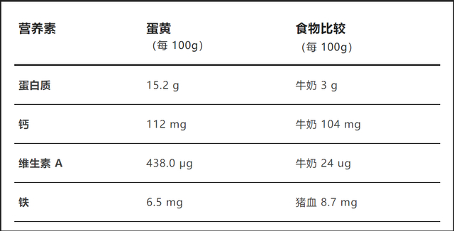 更重要的是,蛋黄里还有很多营养!先通过一组对比来看看蛋黄的实力: