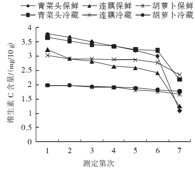 专家把青菜头、莲藕、胡萝卜分别放在 4℃ 保鲜层和 -19℃ 冷冻层,监测维 C 的流失量对比,结果令人大为震惊: