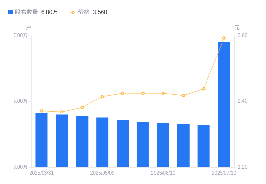 近一年(2024年7月10日至2025年7月10日),南山控股A股股东户数从4.73万户,增加至6.8万户,增幅43.81%,区间股价上涨77.11%。