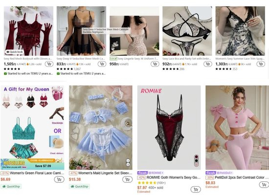 TEMU与希音(SHEIN)平台上的一些情趣内衣商品