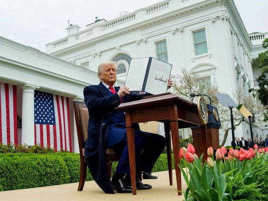 特朗普展示他刚签署的增加关税的行政令