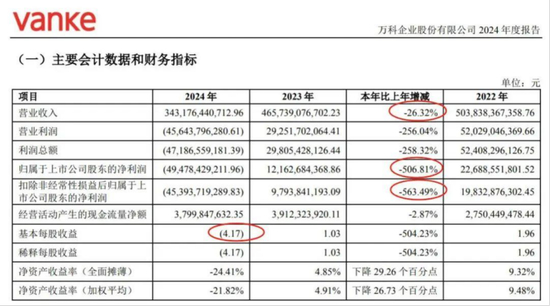 3月31日,万科公告称,2024年营业收入3431.8亿元,同比下降26.32%;归属于上市公司股东的净亏损494.78亿元,去年同期净利润121.63亿元。