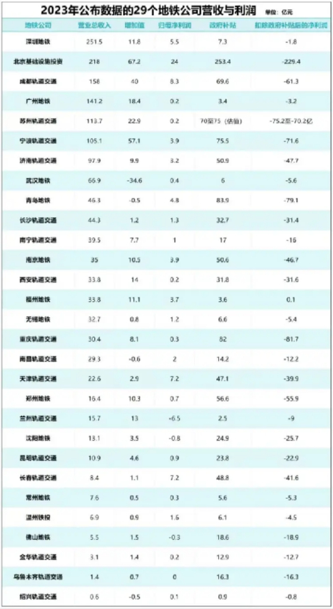 一年回到解放前。2024深圳地铁一年的亏损使得过去5到6年都白干了。截止2024年,中国地铁领域唯一盈利的深铁的神坛跌落,标志着中国地铁在盈利方面计划全军覆没。