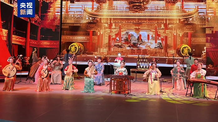 当天在世博会园区内,以“华彩中国·共绘未来”为主题的大型文艺演出精彩上演,演出运用音乐、舞蹈、戏曲、书法、武术、杂技、非遗等表演形式,让历史悠久、底蕴深厚的中华文化在大阪世博会舞台精彩绽放。