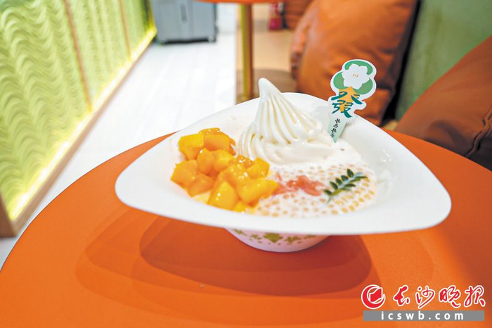 马路对面的平和堂商场里,“栀否栀否·中国冰淇淋糖水”店同样吸引眼球。整家店以绿色和木头为主元素,加上精美的镂空木窗,让人感觉走进了江南的小园林。记者选购了一款“芒果酥山”,浓稠的牛奶中点缀着西柚、西米、芒果等食材,旁边的冰淇淋清爽解腻,底下还铺了一层厚厚的布丁。轻轻咬下,多重感觉在口中瞬间漾开。