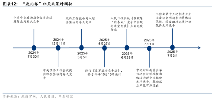 新一轮“反内卷”冲锋号吹响,光伏行业首当其冲。7月1日中央财经委员会第六次会议明确提出依法治理企业低价无序竞争,推动落后产能有序退出,且7月3日工信部第十五次制造业企业座谈会也明确表示将依法依规、综合治理光伏行业低价无序竞争。从时间线上看,反内卷受重视程度逐渐上升,最早去年7月份由中共中央政治局会议首次提及防止内卷式竞争、去年12月的中央经济工作会议提出综合整治内卷式竞争,再到今年3月政府工作报告写入综合整治内卷式竞争、6月出台修订《反不正当竞争法》,国家层面“反内卷”政策信号持续释放。当前光伏行业价格和盈利探底,在反内卷政策推动下,行业减产护价有望落地,供需格局有望修复,目前价格修复已率先在硅料环节体现,根据SMM,7月8日多晶硅预期价格大幅上调,多个主流企业开始测算自家完全成本并暂时停止报价,市场预期基于完全成本测算普遍认为将在39-40元/千克之上。