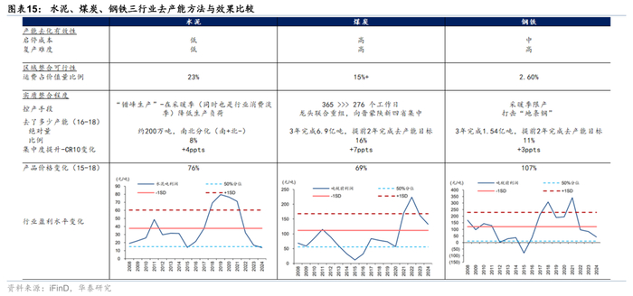 产能压降比例分别为水泥8%、钢铁11%、煤炭16%。