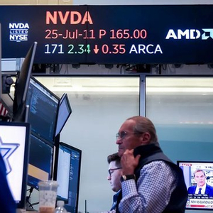 美国纽约证券交易大厅上显示英伟达公司