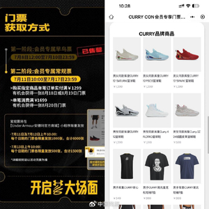 抽奖规则显示,库里运动聚场门票将通过满赠活动发放。该满赠活动将从7月8日中午12点持续至7月17日晚12点,并分为早鸟优惠期、常规活动期两个阶段。