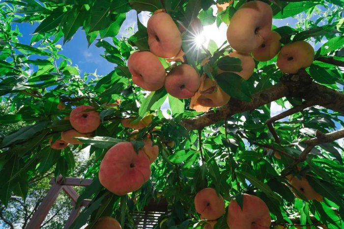 同样是桃,金山蟠桃的果园看起来平平无奇,其实地底下大有说头。生物学角度上,桃子的甜度与生长阶段吸收的水分有关,上海为冲积平原,地下水位高,一旦初夏时节雨水多,桃的甜度就会因土壤中的水分过多而降低。为此,许多年前,金山一名专家型果农就探索出土壤改造的方式——在果垄下方土壤深挖60公分,在地底埋入排水管道,从而更精准地控制果树根系吸收的水分。农人们煞费苦心种出来的桃子,大概也很难不好吃。