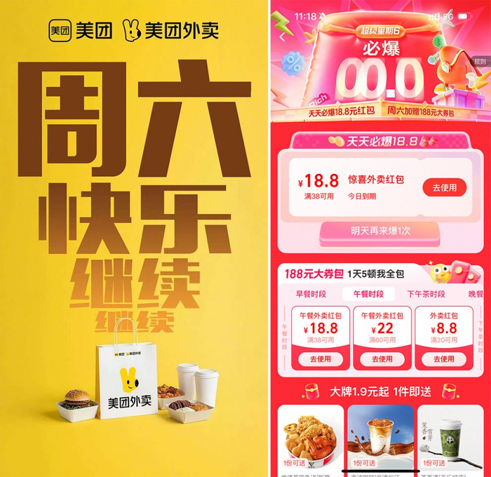 “0元喝奶茶”“188元大券包,五顿我全包”......本周末,外卖大战又升级!