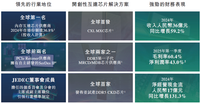 根据弗若斯特沙利文的数据,于2024年按收入计算,澜起科技已成为全球最大的内存互连芯片供货商,市场份额36.8%。
