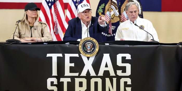 特朗普在受灾最重的克尔县称赞地方当局、得州政府和联邦政府的应对与救灾工作。他同时表示,洪水给当地造成的破坏“实在令人难以置信”。