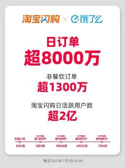 红星资本局7月7日消息,淘宝闪购和饿了么联合宣布,淘宝闪购日订单数超8000万,其中非餐饮订单超1300万。昨日,美团公布的信息显示,截至7月5日23时左右,美团即时零售当日订单突破1.2亿单,其中,餐饮订单已超过1亿单。