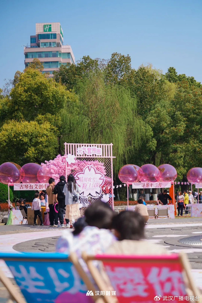 2025年樱花季,晴川吹雪·粉上汉阳活动在大禹神话园举行,现场集市受市民欢迎。
